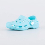 Лёгкие и удобные пляжные сабо для девочки Обувь полностью выполнена из материала ЭВА (этиленвинилацетата) - очень лёгкого, гибкого, эластичного и амортизирующего. Он быстро сохнет и его легко мыть. Закрытый носок защищает пальцы от горячего песка и камней, при этом перфорация позволяет стопе \'дышать\'. Перекидной ремешок надежно фиксирует обувь на ноге. Пляжные сабо можно дополнительно украсить стильными декоративными элементами, которые приобретаются отдельно. Модель имеет анатомически правильную форму следа. Сделано в России.